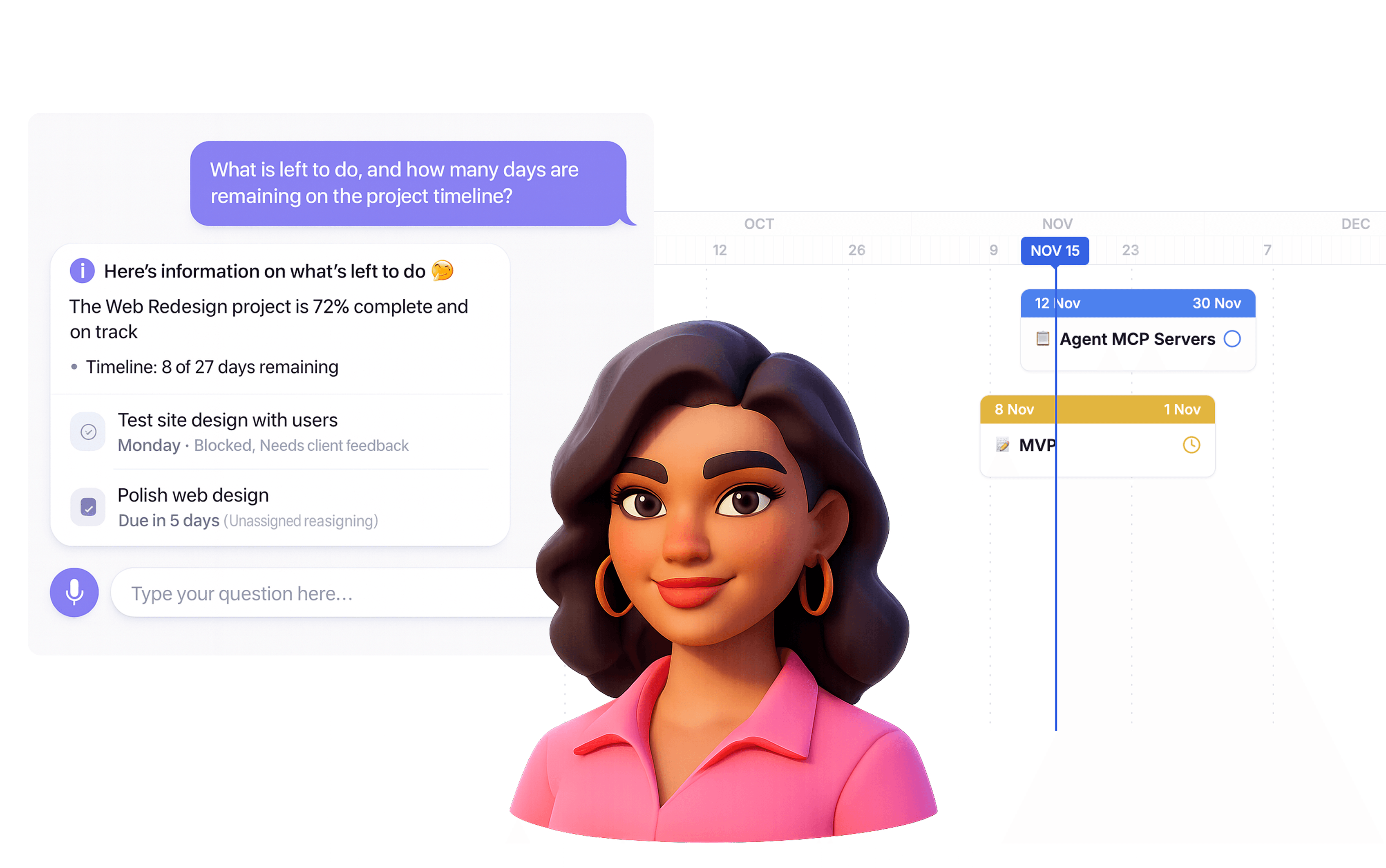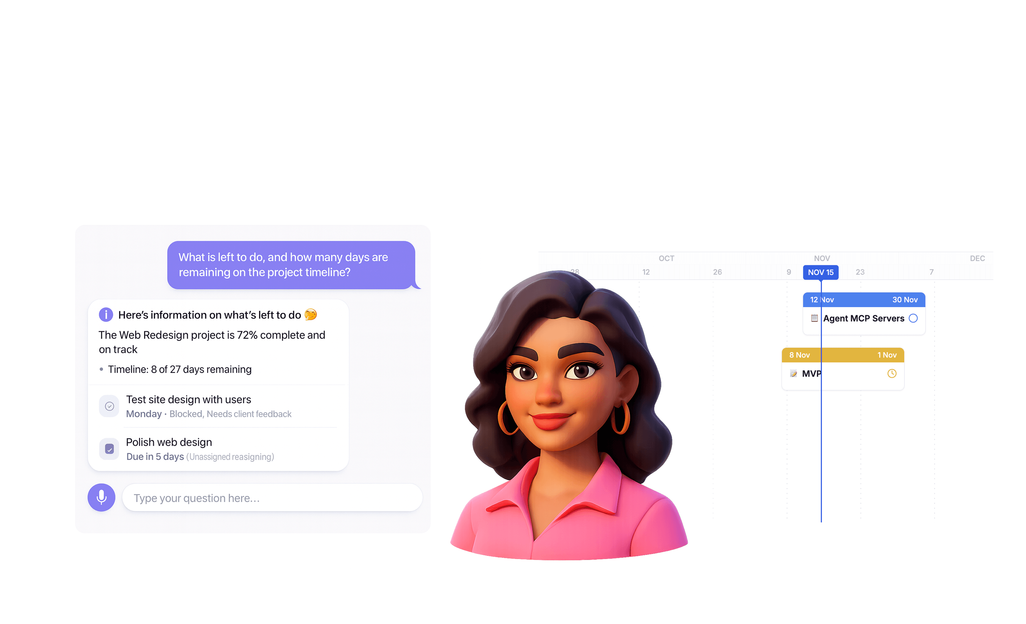 Your AI Project Manager keeps work moving — updating tasks, handing off next steps, and catching slowdowns instantly.
